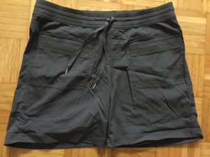 Hier habe ich vor allem aufs Gewicht geachtet. Die Penelope Shorts von Marmot wiegt gerade mal 150g, hat 4 Taschen! (vorne 2 und hinten 2) und oben Gummizug. Also 5kg mehr oder weniger machen hier nichts aus. Super bequem.