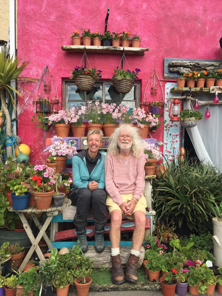 Ich ziehe in mein neues B&B ein und frage, ob ich auf der Terrasse lesen darf. Nein, es ist ein Flachdach, aber ich könnte auf die Bank am Parkplatz, sollte mich nur vor „dog“ in Acht nehmen. Ich bin also wachsam, gehe raus, schlage mein Buch auf, macht einer Musik an. Van Morrison. Es ist der Nachbar, er lächelt mich an und sagt „wenn es dich nervt, sag Bescheid!“ Er kommt rüber und wir quatschen. Ob ich jonglieren könnte. Ja, kann ich. Glaubt er nicht, geht in sein Haus, das aussieht wie ein Gewächshaus und holt 3 Bälle. Ich beweise es und wir zeigen uns ein paar Tricks. Er erzählt mir Geschichten aus seinem Leben. Wir sitzen da bestimmt zwei Stunden. Er ist ein Freak, aber toll. Und was für ein Charisma!