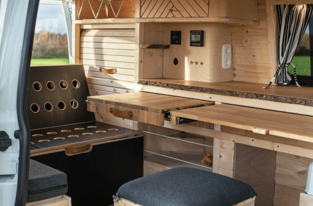 Hoffentlich gute Bremer Jungs (fahrendeszuhause) machen ihr Handwerk im wahrsten Sinne des Wortes, denn ich bekomme einen superschönen Holzausbau und nicht die standard VW-Module mit schön abwischbaren Oberflächen. Hier seht ihr ein Foto von einem, der schon fertig ist. Meiner wird noch gebaut.
