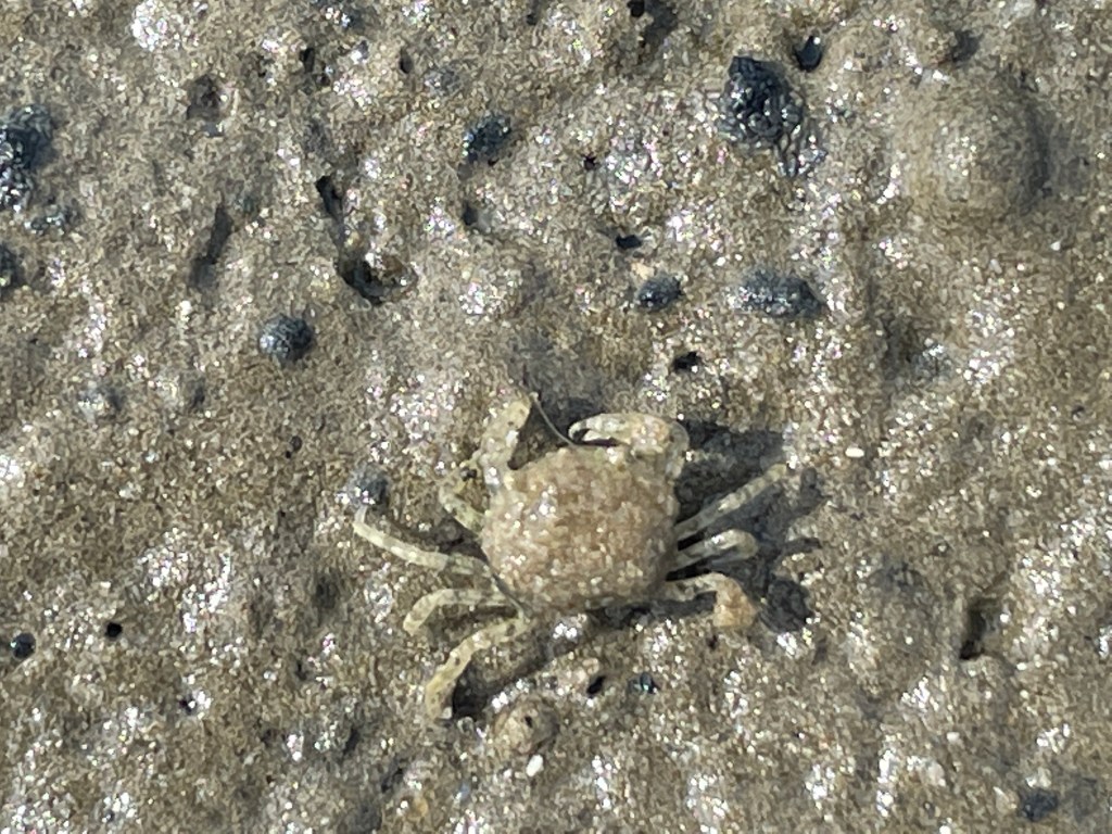 Irgendwann sehe ich, dass hunderte von Minikrebsen vor mir flüchten. Der hier ist vielleicht 3mm groß: