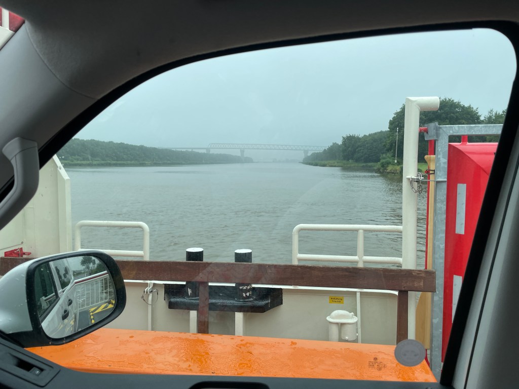 Google Maps sagt mir knappe vier Stunden Fahrtzeit bis zum Weserstrand. Ich hab Angst, dass ich doch Glück verpasse. Will auf dem Weg noch kurz in Glückstadt anhalten, da kommt unangekündigt die erste Fähre über den Nordostseekanal daher.