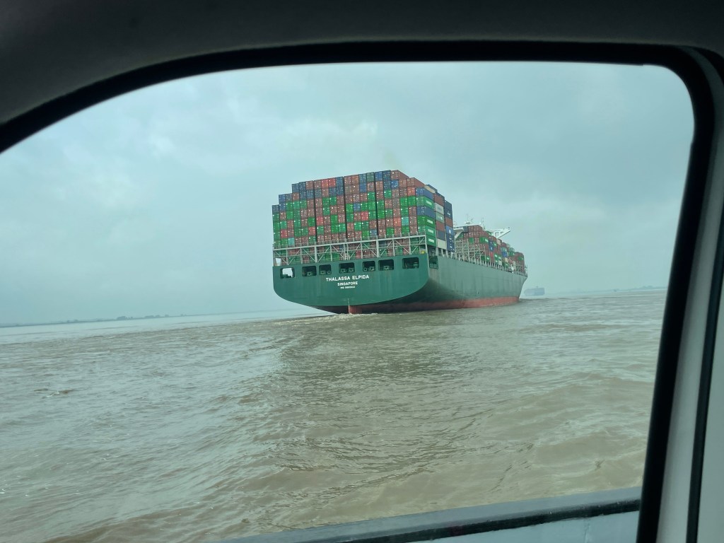 Ich muss gar nicht lange warten, hatte aber irgendwie verdrängt, dass Fähre auch nicht mein beliebtestes Fortbewegungsmittel ist. Puls, feuchte Hände und die Wellen der Containerschiffe wegatmen. Ich mach die Schleife ja meist, weil Tunnel gar nicht denkbar sind. Ich mag grundsätzlich nichts, was ich nicht bei Bedarf verlassen kann. Und es gibt diverse Abstufungen… Tunnel auf gar keinen Fall, Fähre zur Not, Flugzeug und Zug gehen komischerweise wunderbar.