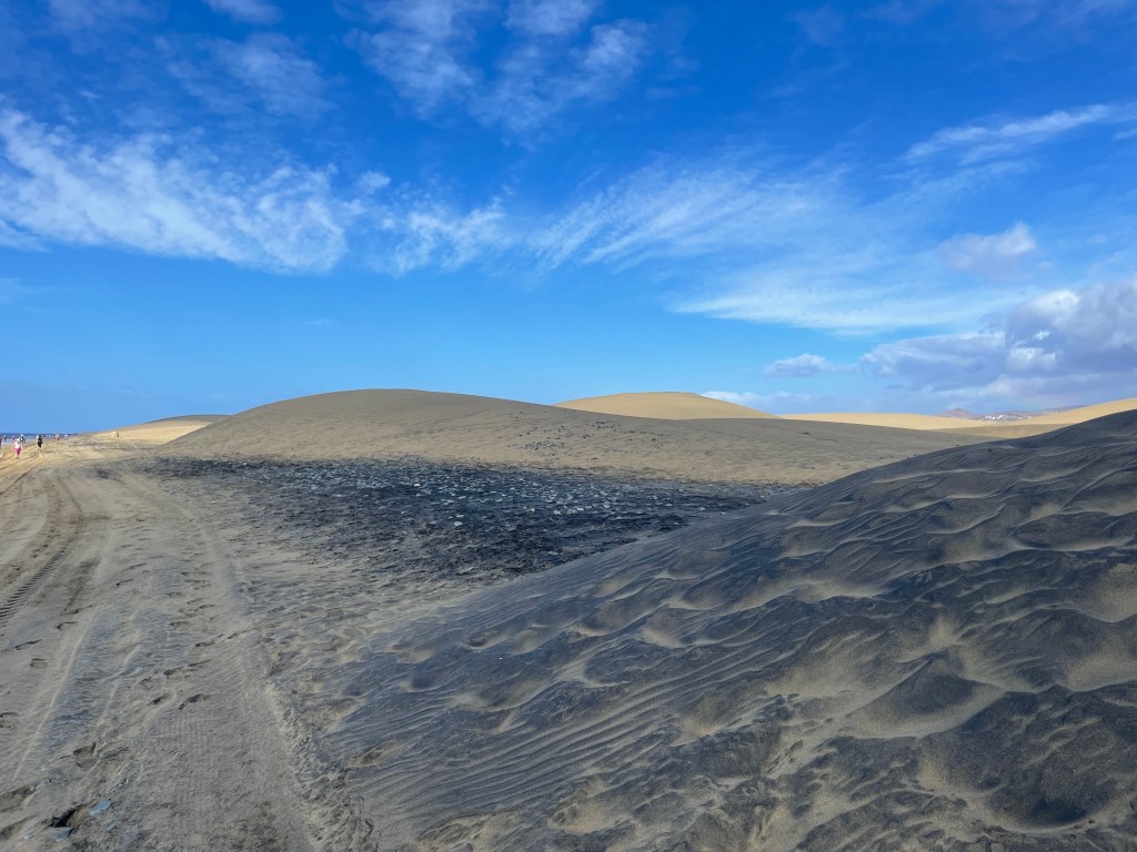 Nach sensationellem Frühstück will ich mich auf meine Trainingsrunde begeben. Um die Düne bis Playa del Ingles, immer am Wasser lang.