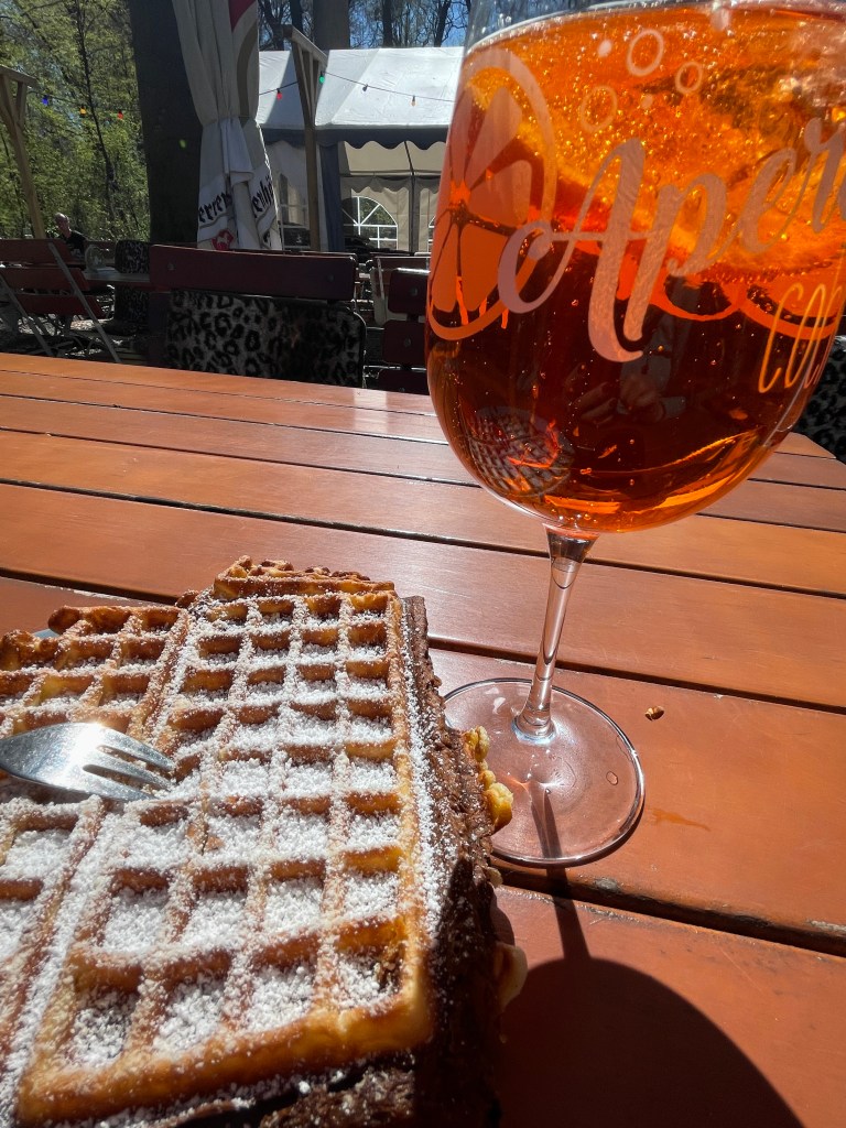 Ich bestelle mir ein Frustmenü im Bischofsholer Biergarten und fahre mit dem Bus nach Hause.