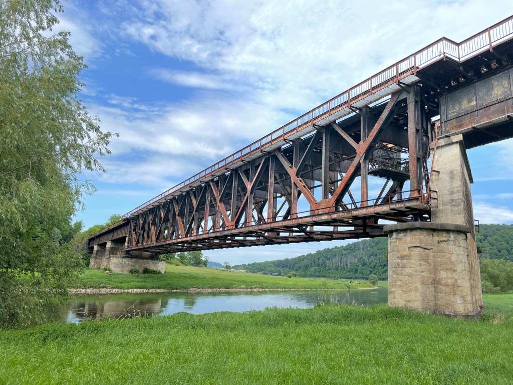 Ich fahre links die Weser hoch bis Höxter, da fahr ich mir einen Knoten in die Beine. X Kilometer Radweg und eine Brücke sind gesperrt, die ganze Stadt ist eine Baustelle. Umleitungsschilder wären toll gewesen 😉