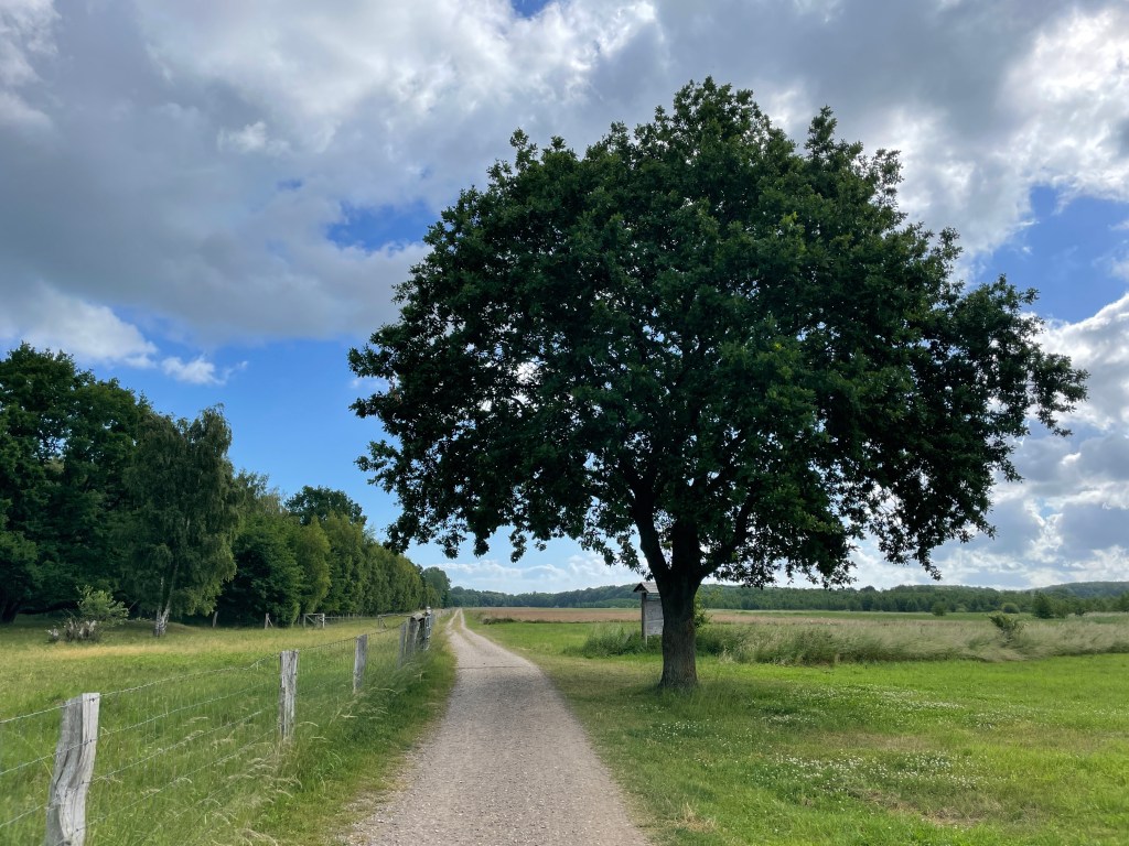Nach 20 Kilometern erreiche ich mein Ziel. Ein fünfzig Meter langes Gutshaus. Man lässt mich freundlich herein, gibt mir den Schlüssel und verschwindet. Ich bin jetzt Gutsherrin und kann jede Stunde eine neue Sitzecke ausprobieren. Leider ohne Essen und Trinken, hier ist weit und breit nichts, nächste Nahrung fünfeinhalb Kilometer entfert, Regenguss vier und fünf sind inzwischen auch durch. Gibt es halt mein Lunchpaket von heute morgen.