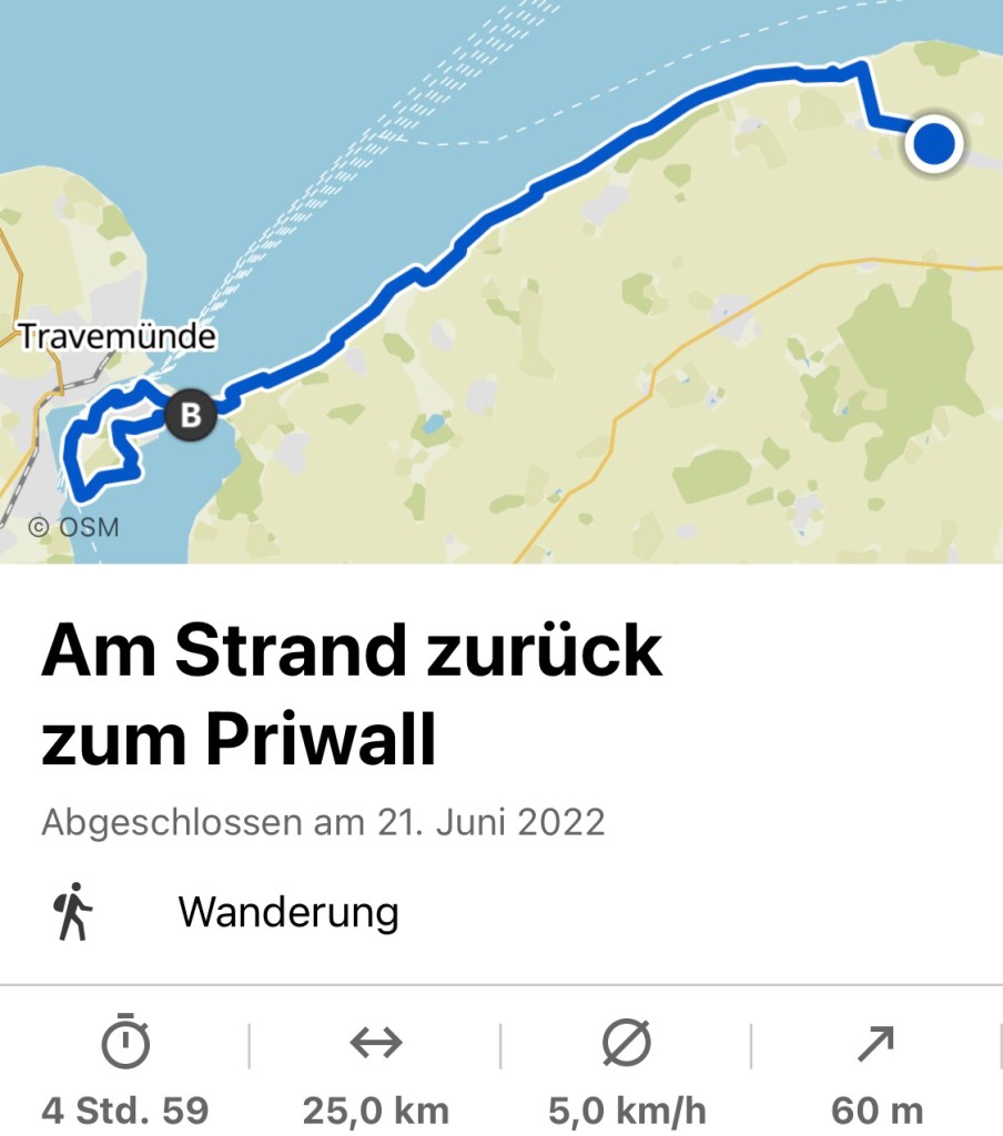 Nach 20 Kilometern, davon 15 im Sand, erreiche ich den Priwall und frage mich, ob ich es nochmal beim Henssler versuche. Wobei… Wie sehe ich aus? Laufschuhe, kurze labbrige Wanderhose, verschwitztes T-Shirt, fetter Rucksack und mein Miss Marple Strohhut auf dem Kopf 🙈 Ich traue mich und man lässt mich tatsächlich rein! Keine Spur von kritischen Blicken, sondern ein ganz warmes „Schön, dass du da bist-Gefühl“. Well done, Steffen und Turnschuh-Bruder im Geiste. Sehr geil. Essen Hammer, Atmosphäre mega. Jeder Zeit wieder.