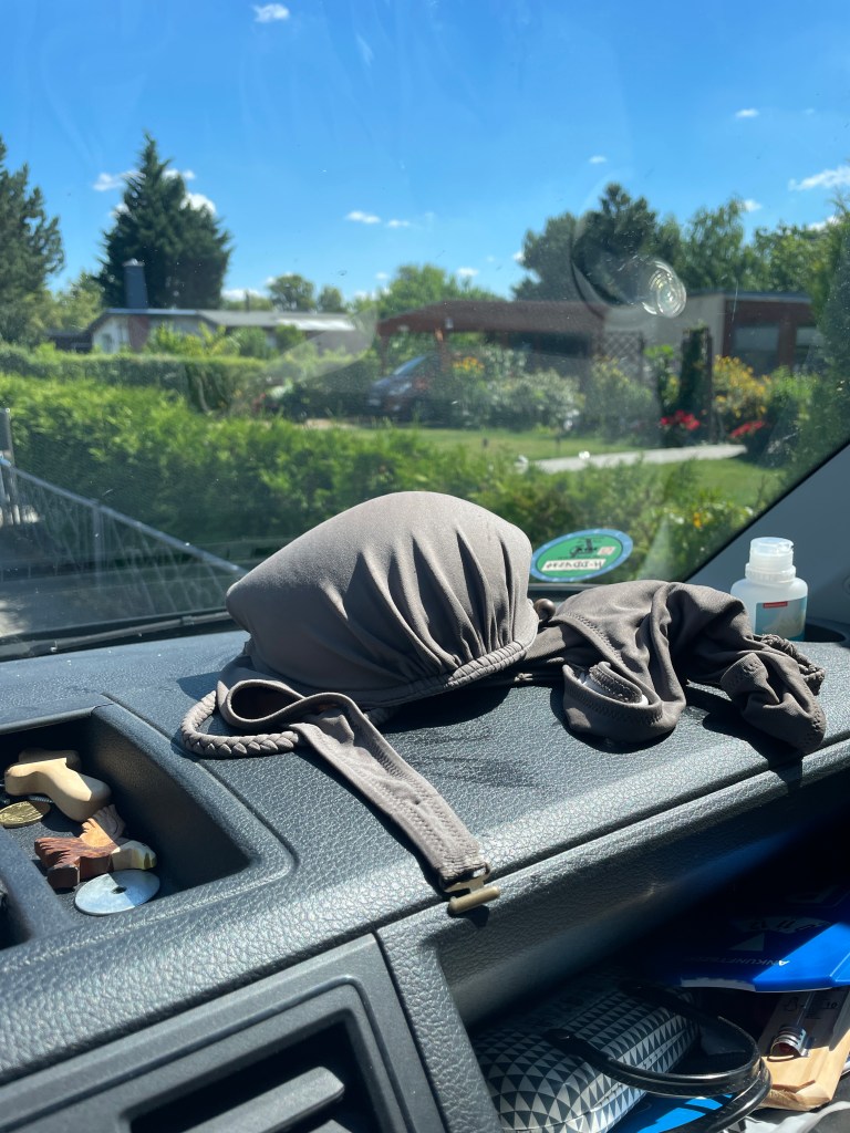 Ich schlafe im Bulli, den ich im Vorgarten geparkt habe, die beiden Jungs in der Datscha. Mir wird früh warm und ich öffne die Heckklappe, so gehts.