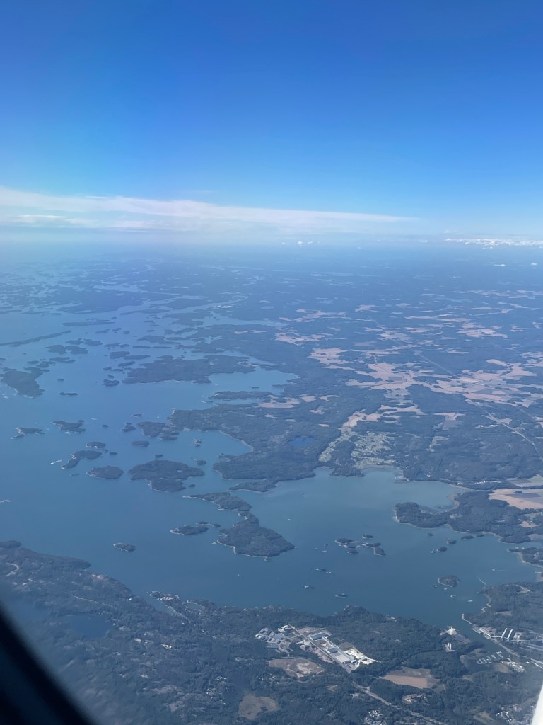 Wir sind alle beeindruckt vom Flughafen in Helsinki. Wahnsinnig schnell und sehr modern. Nichts mit Wanderstiefeln ausziehen, Gürtel raus und so Zeug. Ich weiß nicht, scheinbar haben die hier andere Maschinen als sonst wo in Europa.