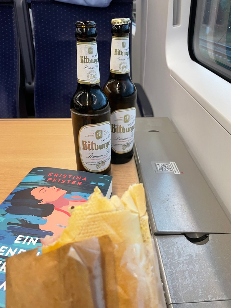 Ich hab Schmacht und Durst und gehe 8 Wagen weiter ins Bordbistro. Zwei Bier, ein Baguette, das sollte reichen.