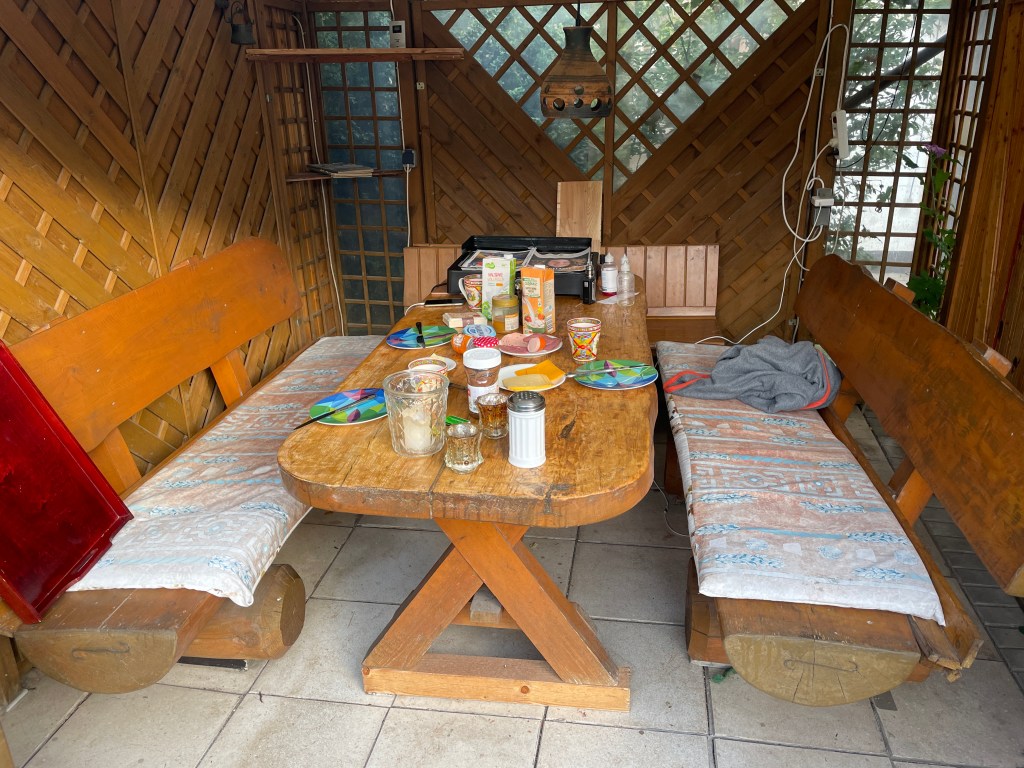 Ich darf bis 8 Uhr schlafen, dann erwartet mich das Frühstück… Draußen. Steffi meint, ab 10 Grad ist das hier so. Aha. Ich grinse, ziehe mich warm an und es ist echt schön.