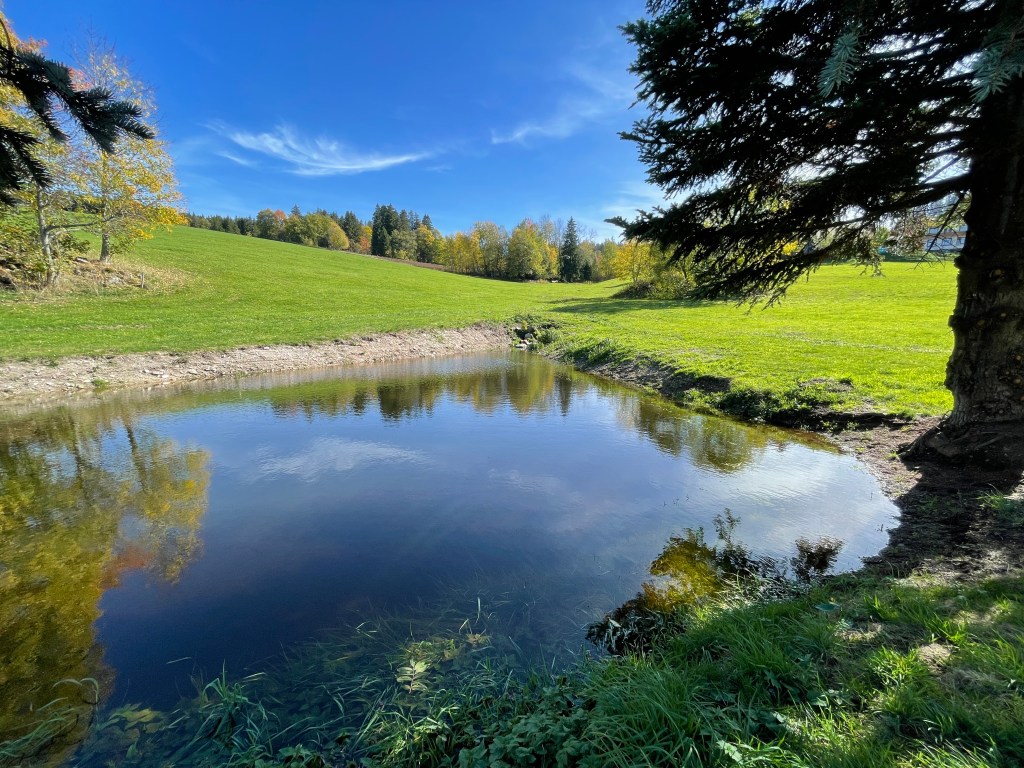Es ist unfassbar schön, die Herbstfarben und der blaue Himmel sind mega. Eigentlich würde ich morgen woanders hinfahren, weil ich den Hanskes nicht die ganze Zeit auf der Pelle hängen will. Und umgekehrt ist dauerhafter Familienanschluss mit meinem Ruhebedürfnis schlecht kompatibel. Aber alles in mir will nicht weg, sondern hier bleiben. Und wie sag ich immer… Frage, Antwort: Ja, natürlich kann ich bleiben.