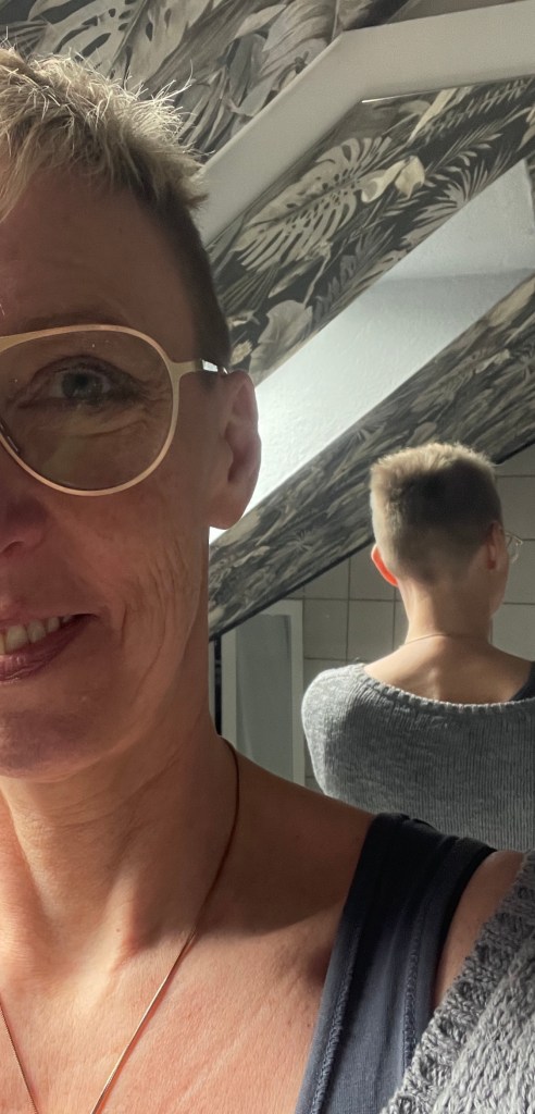 Wegen 3 verschiedener Sonnencremes plus After Sun und Zeug. Dafür entfällt Bürste und Haarspray… Ich hab mir für England schon mal die Haare rasieren lassen:
