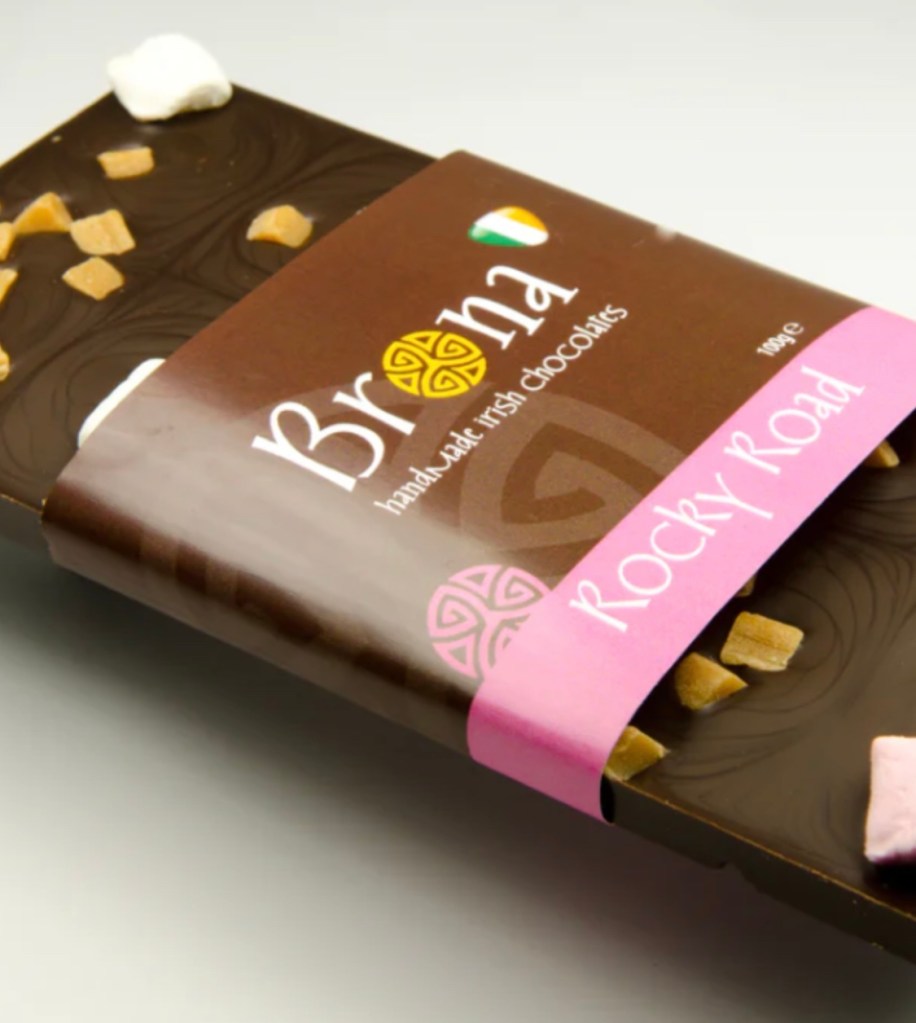 Ich drehe meine Nachmittagsrunde und will auf dem Rückweg bei Brona vorbeigucken. Ich hab in Doolin eine Schokolade gesehen, die ihren Namen trägt und ihr eine mitgebracht.