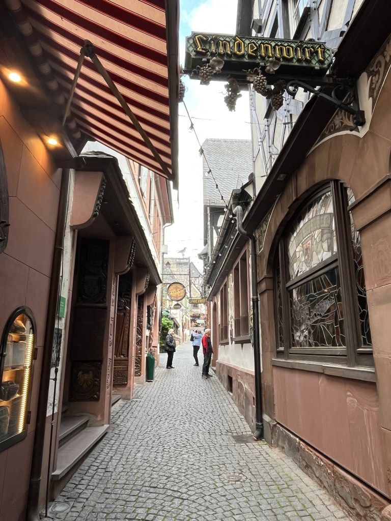 Ich bin an diesem Morgen wahrscheinlich eine der ersten in der berühmten Drosselgasse, die auf den Touri-Highlights Deutschlands sicherlich in den Top 5 steht. Zumindest sagt Wikipedia, dass hier 3 Millionen Menschen pro Jahr durchgehen. Die Asiaten und Amerikaner sind jedenfalls auch schon da.