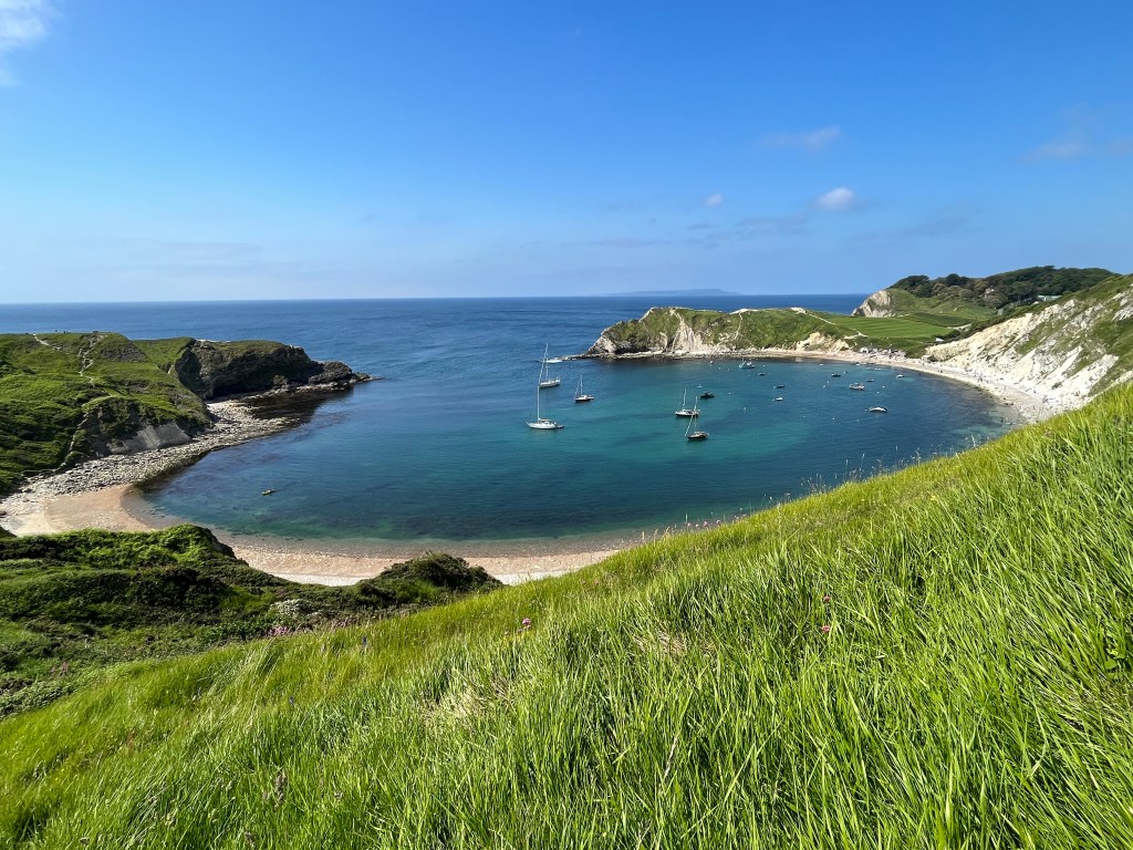 I catch the bus and head back to West Lulworth, which is home to one of Dorset’s biggest attractions, the Durdle Door. However, I have extended my tour to include Lulworth Cove. There I stand in the morning after tears, the first hard climb and can hardly believe my eyes.