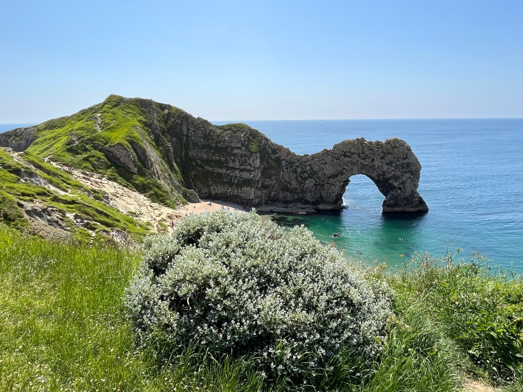 Und dann verblasst sie schon fast, die Durdle Door, die klingt wie aus einem Harry Potter Roman, aber ein 60 Meter hoher Kalksteinbogen ist.