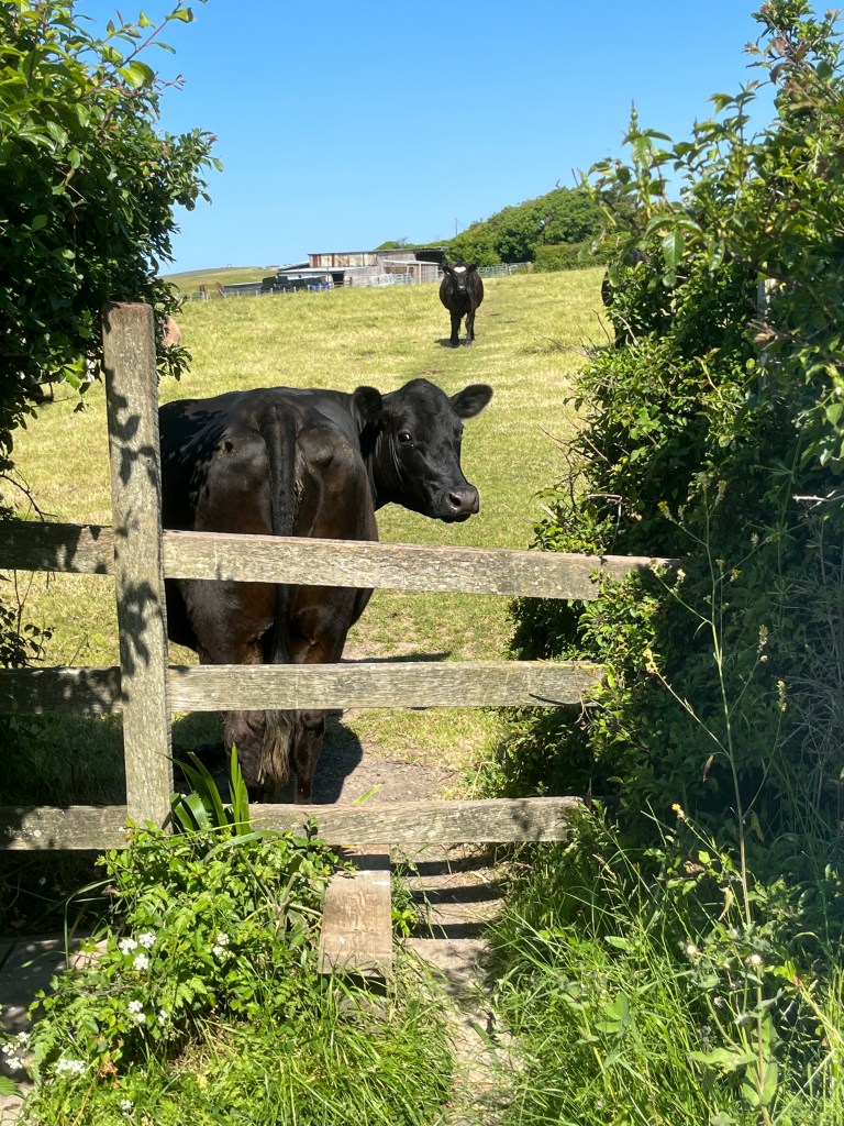 Beide Rinder gucken mich mit einem Blick an, der sagt „Wag es nicht“. Ich so „Hallo, ich bin Darina. Ich tue dir nichts. Meinst du, du könntest mich kurz durchlassen?“ Nichts. Das Rinderproblem muss ich noch in den Griff bekommen, allerdings ist mir das hier eine Nummer zu groß und ich drehe um.