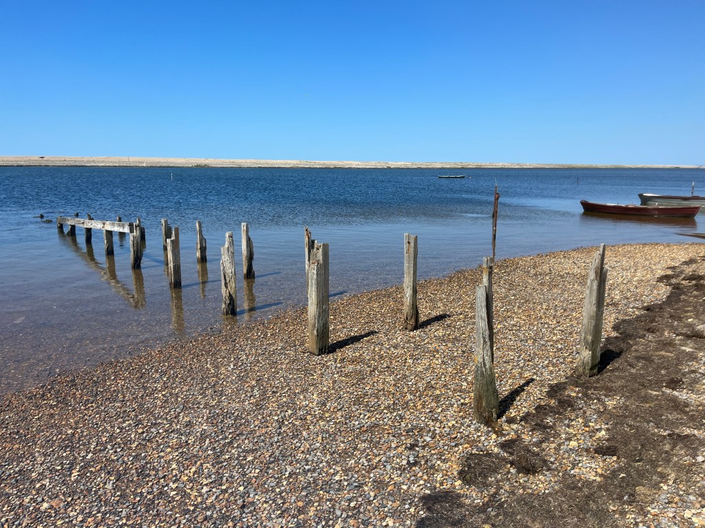 Ich starte früh und verliere die Zeit später durch Umleitung und Verlaufen. Beides kann immer passieren, ist zum Glück kein Weltuntergang und relativ schnell bemerkt. Heute geht mein Weg hinter dem „Steinwall“ Chesil Beach an der Lagune entlang, die sich „Fleet“ nennt. Es steht ein neuer Rekord bevor: Vollbepackt über 18 Kilometer sollen es werden. Wir müssen ja mal Fahrt aufnehmen. Wenn schon nicht in Höhe, dann wenigstens in Strecke.