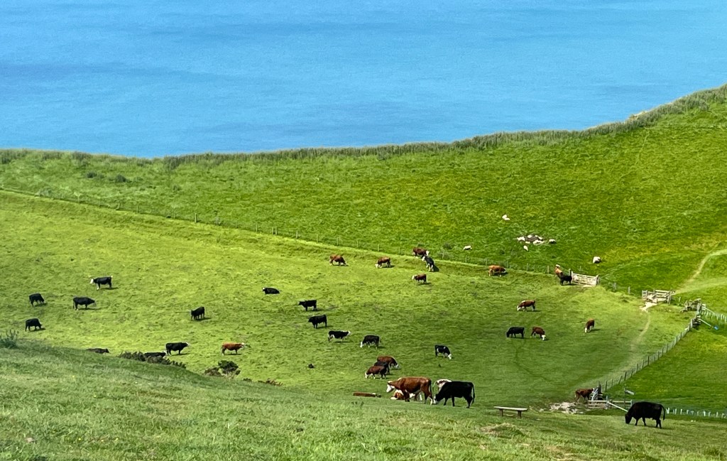 As it goes back down the first hill, I’m happy about the sheep I’m walking through, because sheep are not cattle. I almost start happily whistling when I see this over the next hilltop: