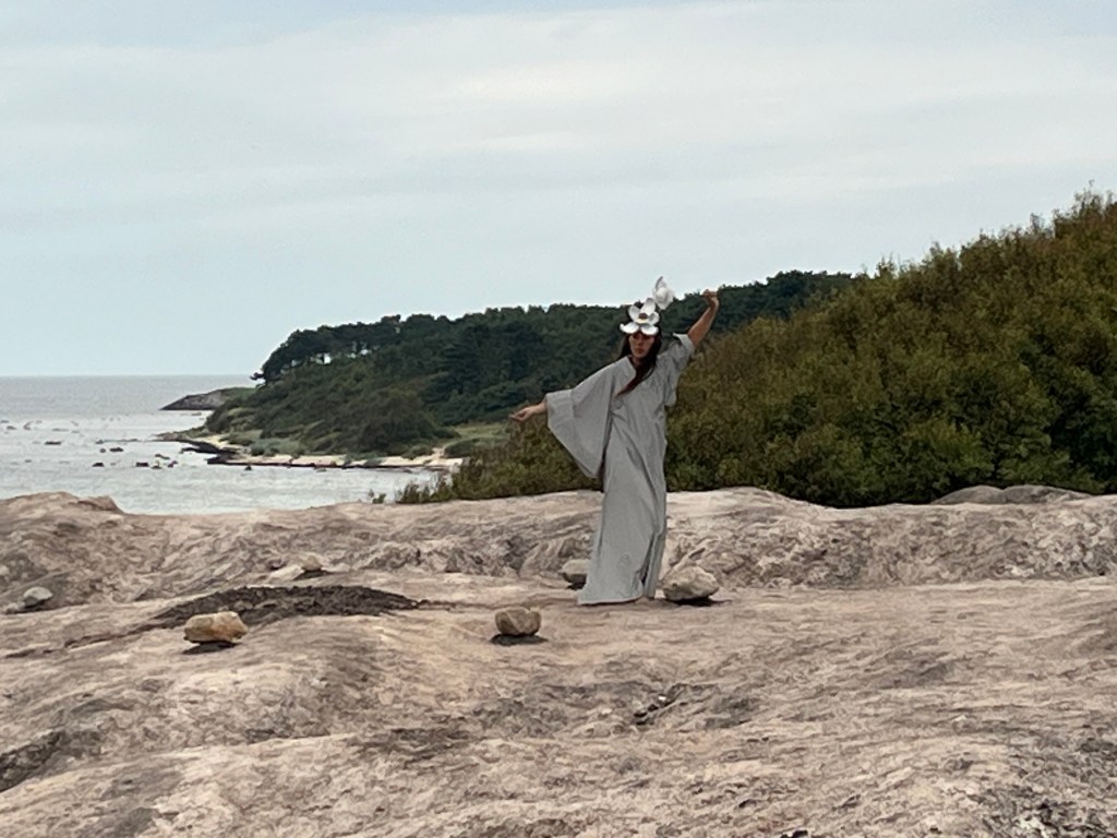 Auf Empfehlung der Rezeptionistin fahre ich abends mit dem Rad zu den Kultippen. Die hatte ich sowieso auf dem Zettel, skurrile Mondlandschaft. Hier ist Kulturwoche und heute wird eine Künstlerin zum Schmetterling. Was immer das bedeuten mag…