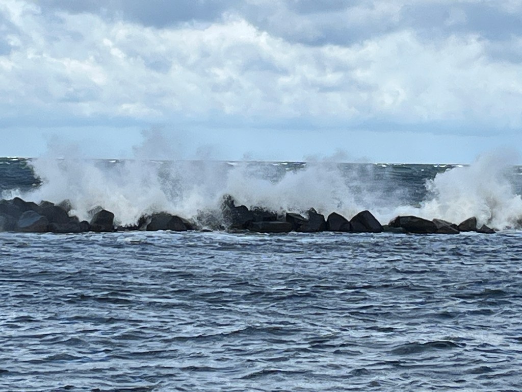 Ich will heute zu Jons Kapel, aber sobald ich am Hafen angekommen bin, also nur 1 Minute mit dem Rad von hier, weiß ich, das wird nichts. Es tobt ein gewaltiger Sturm. Ich habe das nicht gemerkt, weil der Campingplatz hinter einem keinen Wald liegt. Außerhalb des Platzes kannst du kaum stehen, geschweige denn Radfahren.