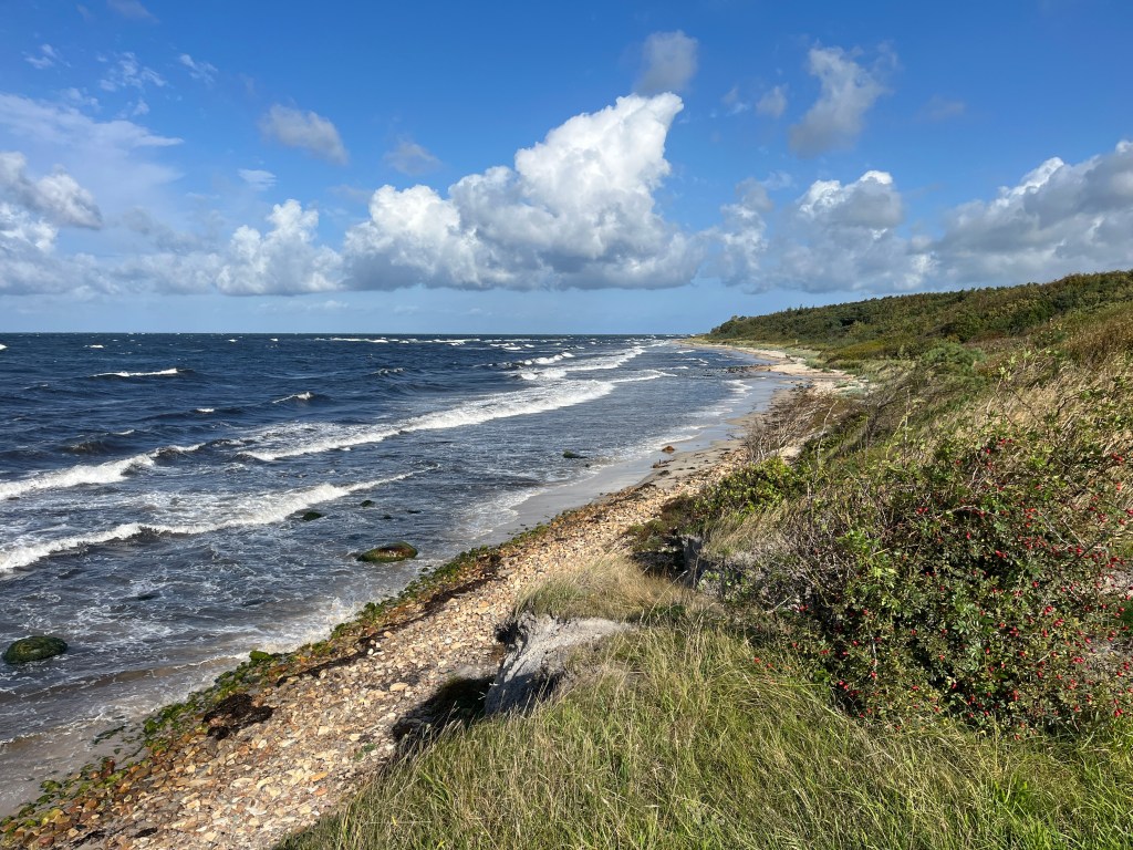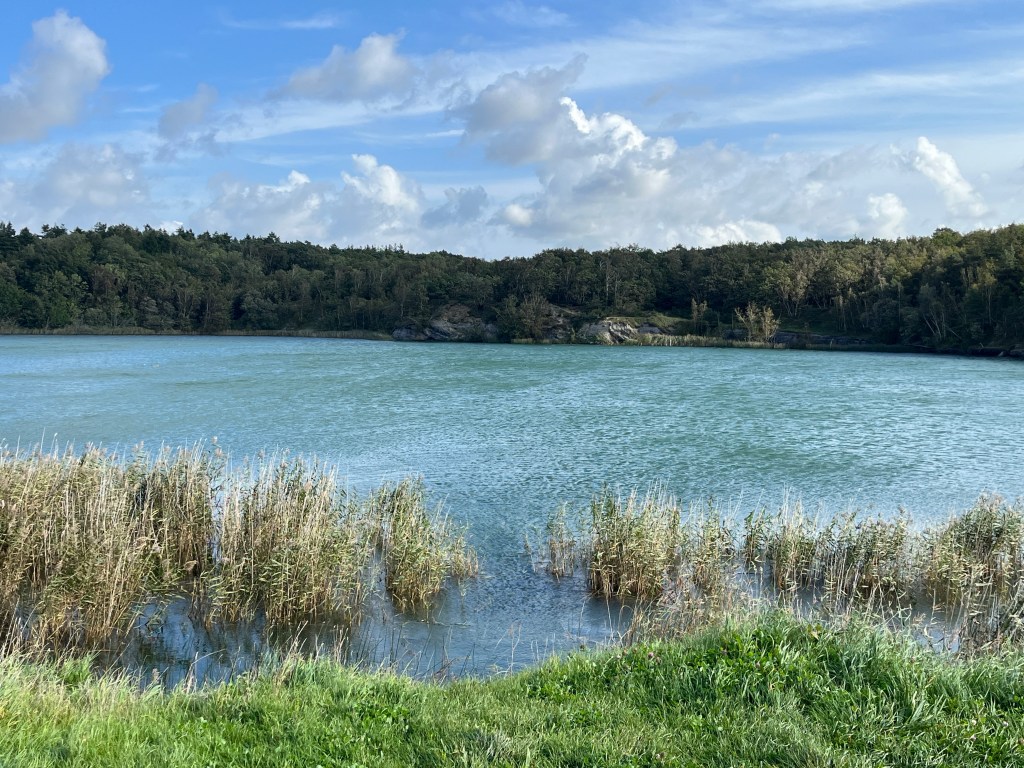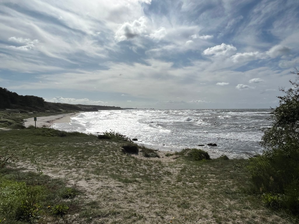 Gegen den Wind schiebt er dich trotz aller Muskelanstrengung rückwärts. Hab ich noch nie erlebt. Was für eine Urgewalt. Der Waldstreifen hinter dem Campingplatz zieht sich bis Rønne und mittendrin ein Fahrradweg. Tatsächlich kann man sich hier einigermaßen windgeschützt bewegen und so mache ich die Seentour.