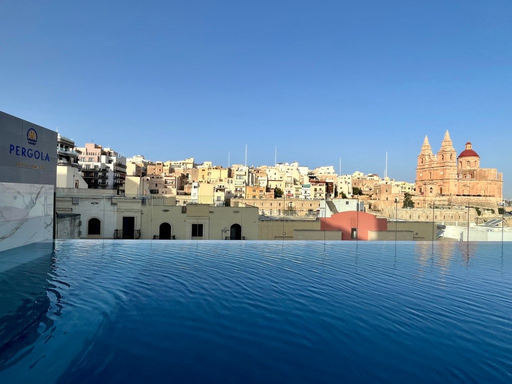 Buch schnappen und ab zum Pool. Hier läuft laute Musik, der Presslufthammer einer Baustelle und die Kirche läutet nach wie vor im Viertelstundentakt. Das hier erinnert von der Geräuschkulisse an Rom, ich bin aber noch im Bornholm-Modus. Heute ist mir das alles egal. Ich grinse und freue mich.