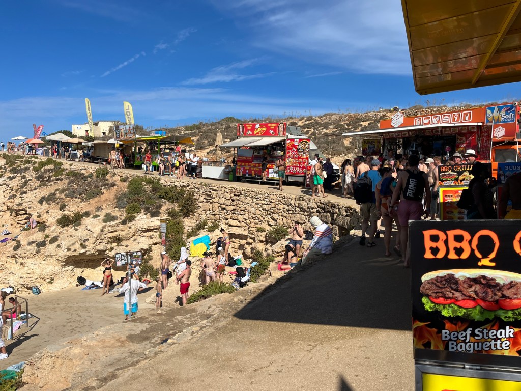 und dann sind wir fertig. Im wahrsten Sinne des Wortes. Die Route heute war komplett schattenfrei. Kein Baum, kein Strauch auf Comino. Karge Insel, tolles Wasser, eindeutig zu viele Menschen und Boote. Dennoch… Wer war schon auf Comino? Ein weiterer Eintrag auf meiner Liste skurriler Orte.