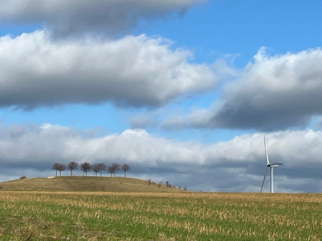 Mit Blick auf den Teich mupfel ich mein Käsebrot und mache mich über die Feldwege entlang des Kronsbergs zurück auf den Weg zum Bulli.