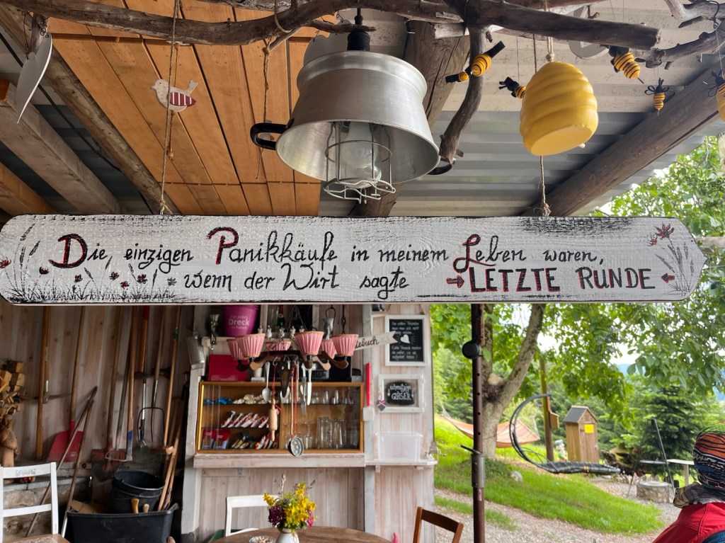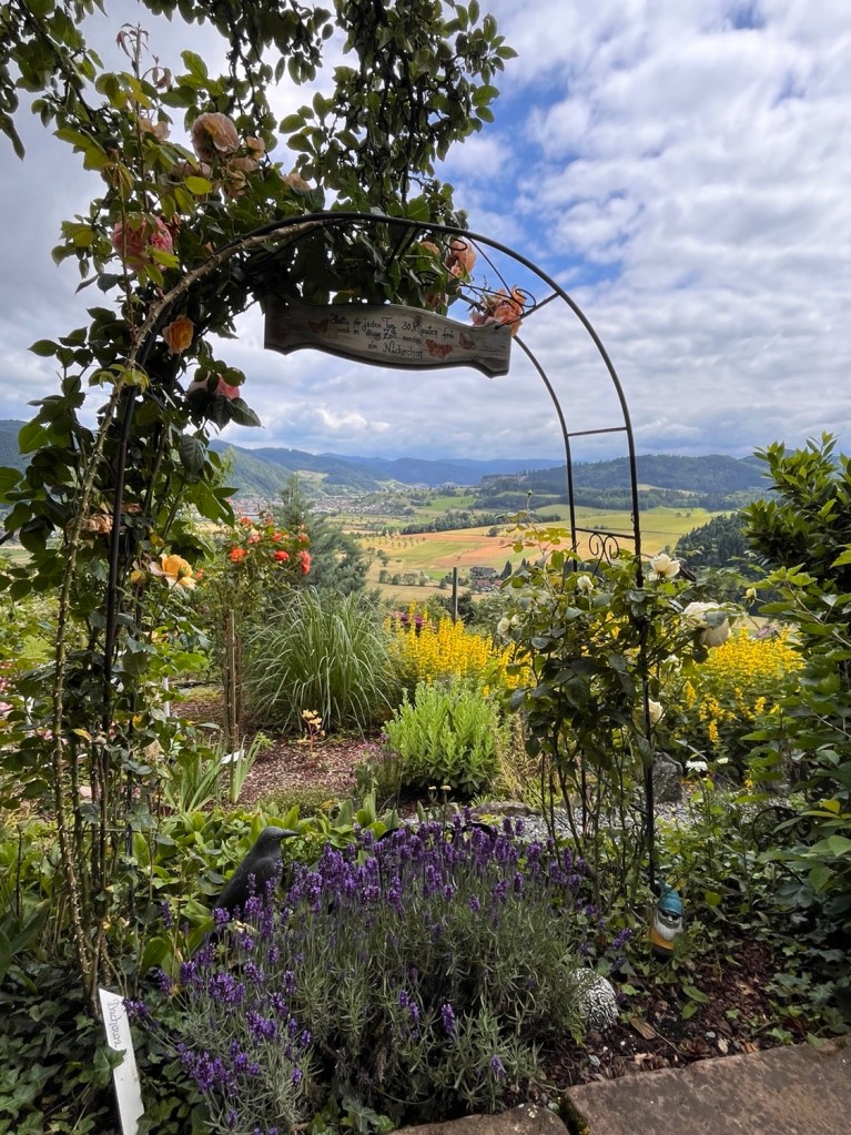 Nach gemeinsamem Katerfrühstück werde ich noch mit dem Auto nach Haslach gefahren. Hier verlängere ich meinen Aufenthalt noch um zwei Tage bei Alex. Erstmal in Ruhe ankommen, dann ziehen wir uns am Nachmittag die Schuhe an, fahren nach Wolfach und wandern zu einem megaschönen Privatgarten im Niemandsland, den der Besitzer mit Vertrauenskasse der Öffentlichkeit zur Verfügung stellt.