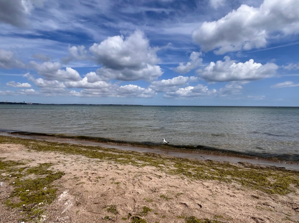Am letzten Tag einer Urlaubsreise macht man nur schöne Sachen, so will es das Gesetz. Und ich habe das wahnsinnige Glück, dass auch noch das Wetter mitspielt! Bis Mittag lese ich in der Sonne, dann drehe ich meine Strandrunde, heute XL,