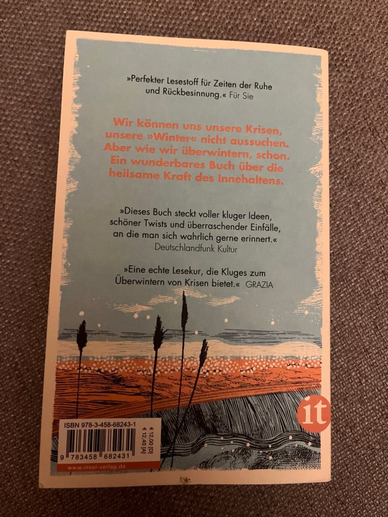 Untertitel „Wenn das Leben innehält“. Wurde gelobt und ich fühlte mich angesprochen, denn auch ich halte jedes Jahr eine Art Winterschlaf. Zwar nicht mit geschlossenen Augen, dafür mit tiefen Sinnfragen.