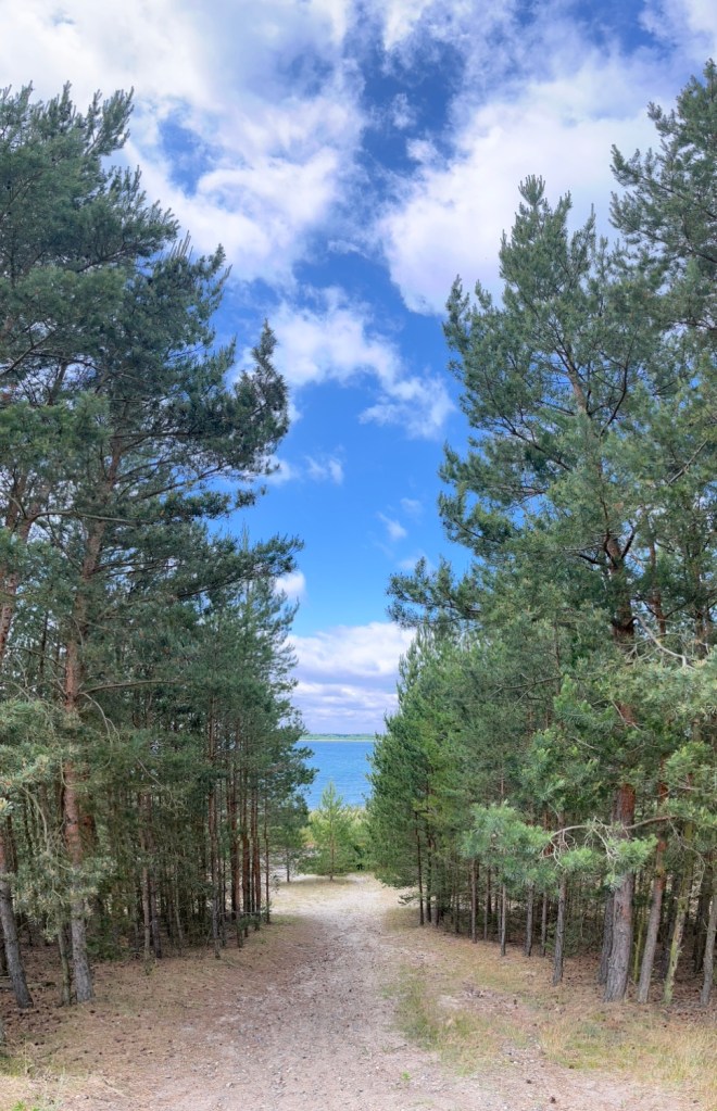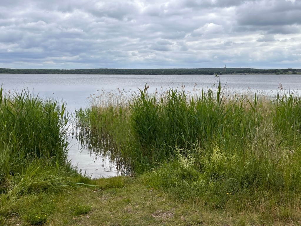 bis mich sehr erschrecke. Ein ICE rast in 30 Meter Entfernung an mir vorbei. Dann Blick auf den See.