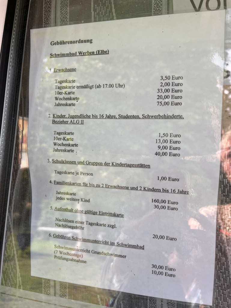 Dann beginnt meine Rückreise aus dem Osten Sachsen-Anhalts in die Altmark. Mein Übernachtungsziel: Werben. Noch nie gehört? Rubrik unnützes Wissen: Es ist die kleinste Hansestadt der Welt! Heute ist aber erstmal nur das vom Campingplatz benachbarte Freibad dran. Hier ist die Welt noch in Ordnung: