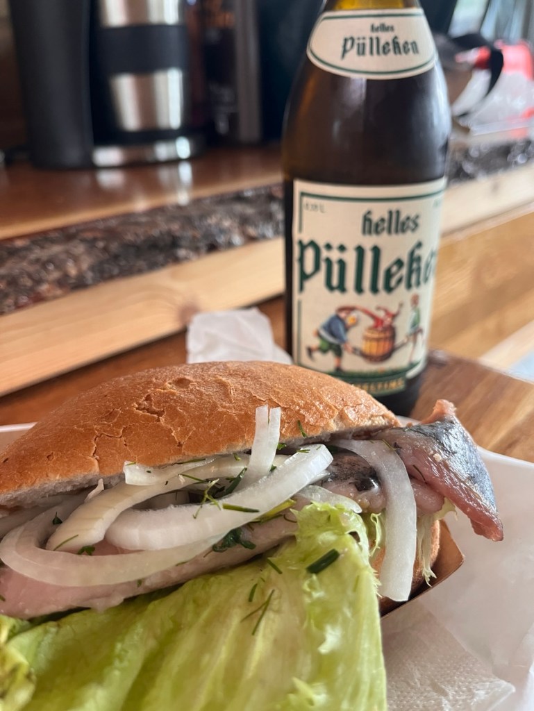 Die Wettervorhersage sagt Schauer, damit kann ich leben. Zwei sind schon durch, der dritte im Anmarsch, da nehm ich mein nächstes Ritual, nämlich das Matjesbrötchen, lieber to go und esse im Bulli.