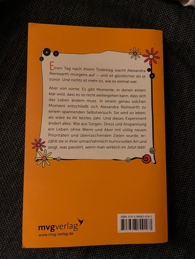 Ich mochte die Idee und das Buch von Anfang an. Es hat auf jeden Fall Spaß gemacht, es zu lesen und einmal 360 Grad seines Lebens aus dieser Perspektive zu beleuchten. Wer es nicht lesen möchte, kann zumindest die Frage für die nächsten Entscheidungen mitnehmen.