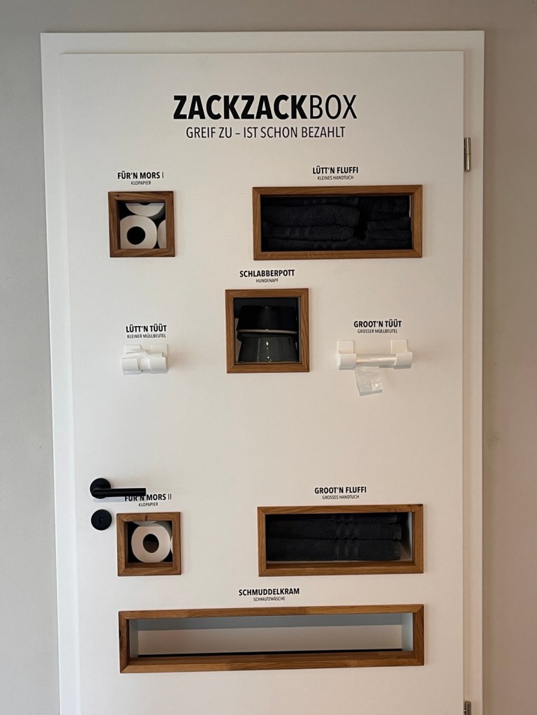 Das Wetter ist grenzwärtig zum Campen im Bulli, ich versuche es nochmal, weil es heute zumindest trocken bleiben soll. Dazu habe ich mir den Friesensee in Wittmund ausgesucht und schon an der Rezeption merke ich: Jackpot. Was für ein geiler Platz bitte? Alles mit Stil und so viel Liebe. Als ich ins Sanitär komme, bleibt mir die Spucke weg. Hab ich noch nie gesehen. Alles nagelneu, megasauber, so modern, schick und erneut… alles mit Liebe.