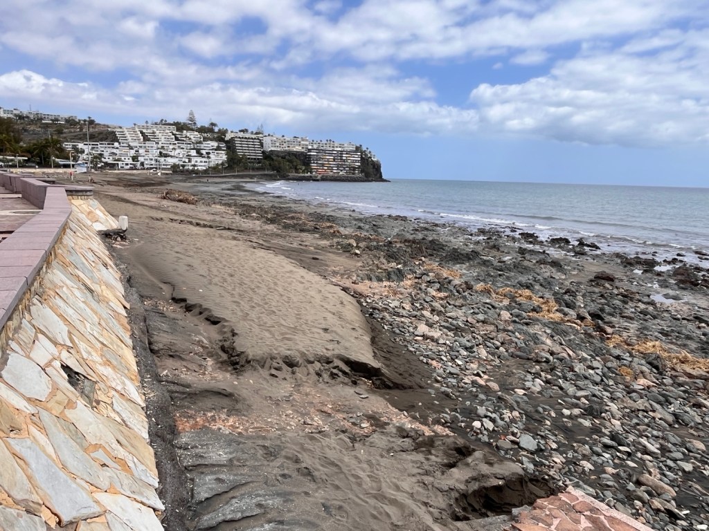 Auf dem Weg zeigen sich noch die Ausmaße von Therese. Sie hat einfach den Strand mitgenommen.